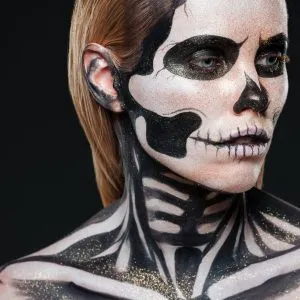 Woman in Skeleton Makeup covered in glitter (Halloween, Day of the Dead)
