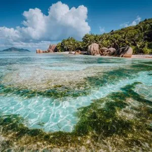 Turquoise Bay with Lilacs in Kefalonia, Greece
